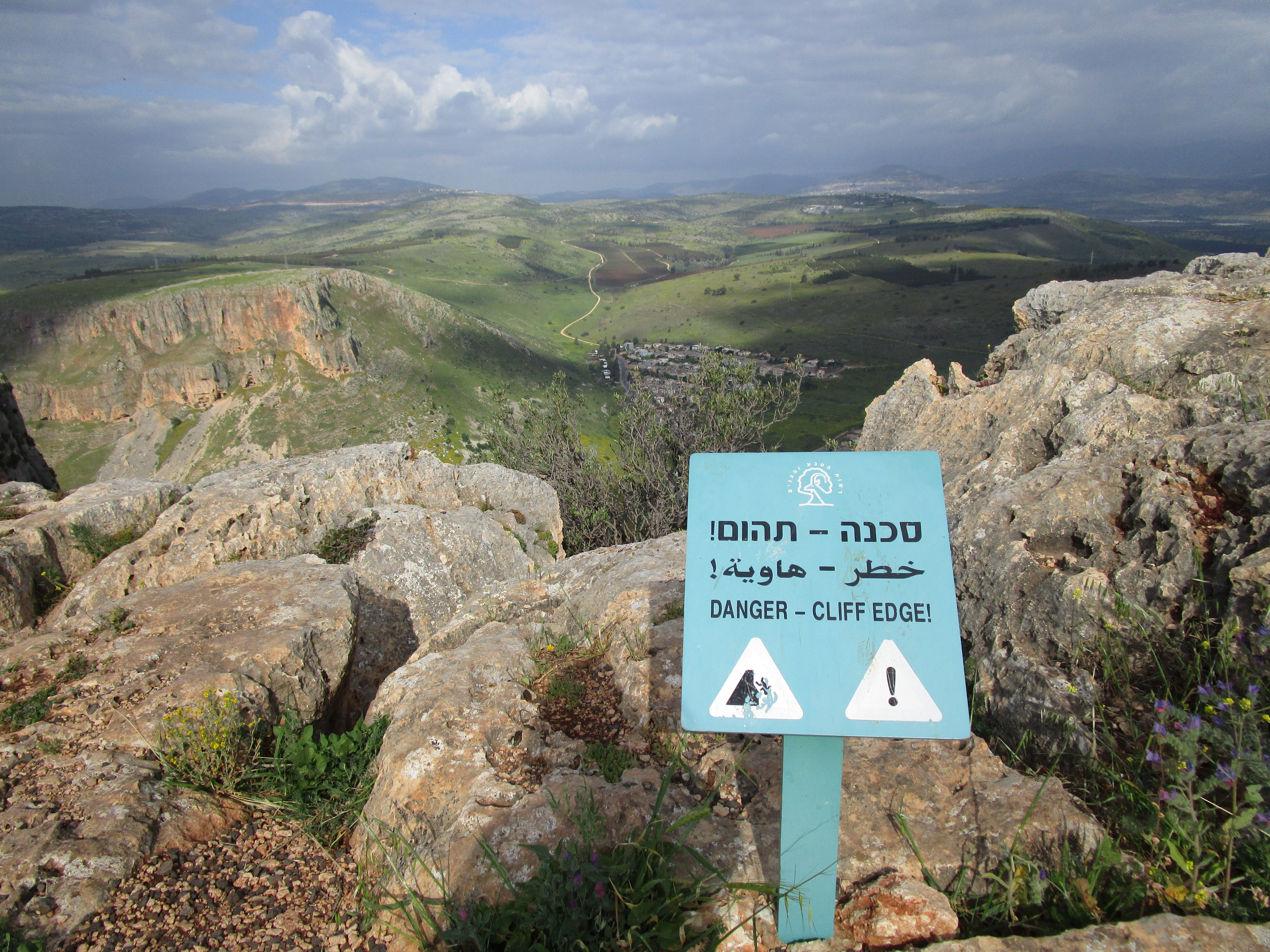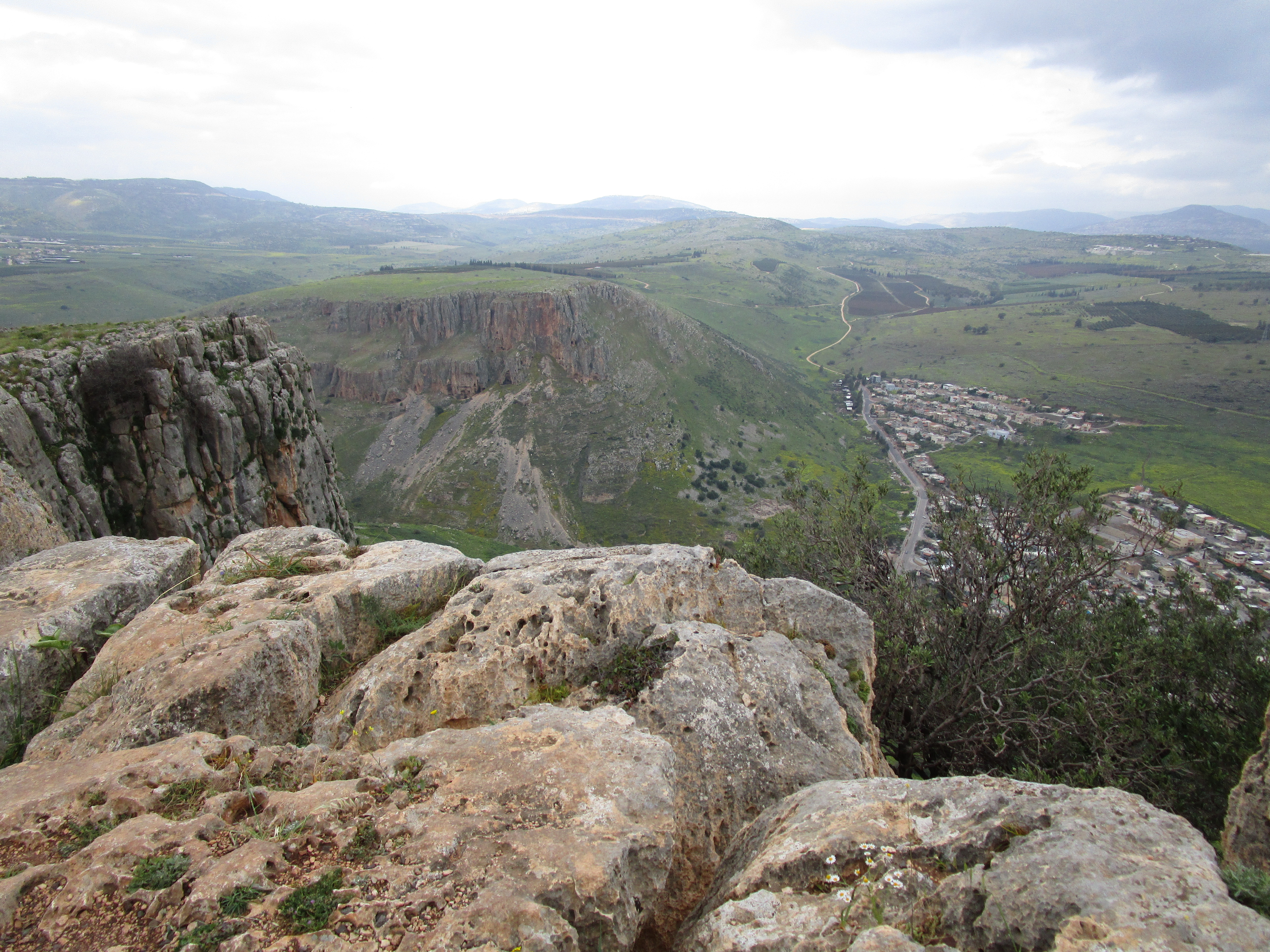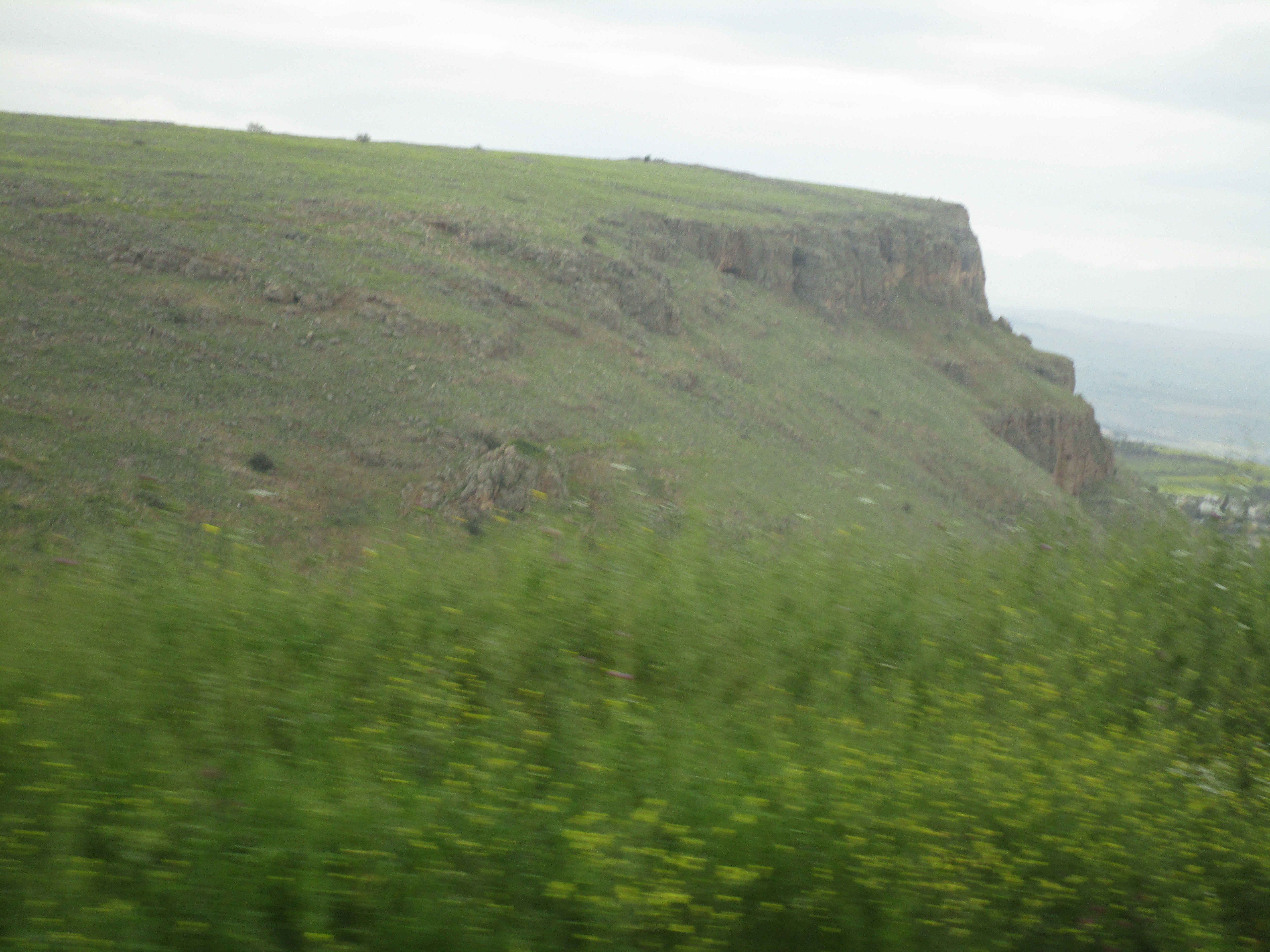 On the bus by 7:30 with a devotional to start our day, and we took off for Mt. Arbel. It is an imposing mountain situated on the northern end of the Sea of Galilee, with a sheer rock drop-off where it faces the sea. We went around the “Horns of Hittim” where Tsvi told us that Saladin won victory over the Crusaders by setting fire to the field. Since the Crusaders were wearing metal armor, they were basically burned to death…and this is when control was turned to the Muslims.