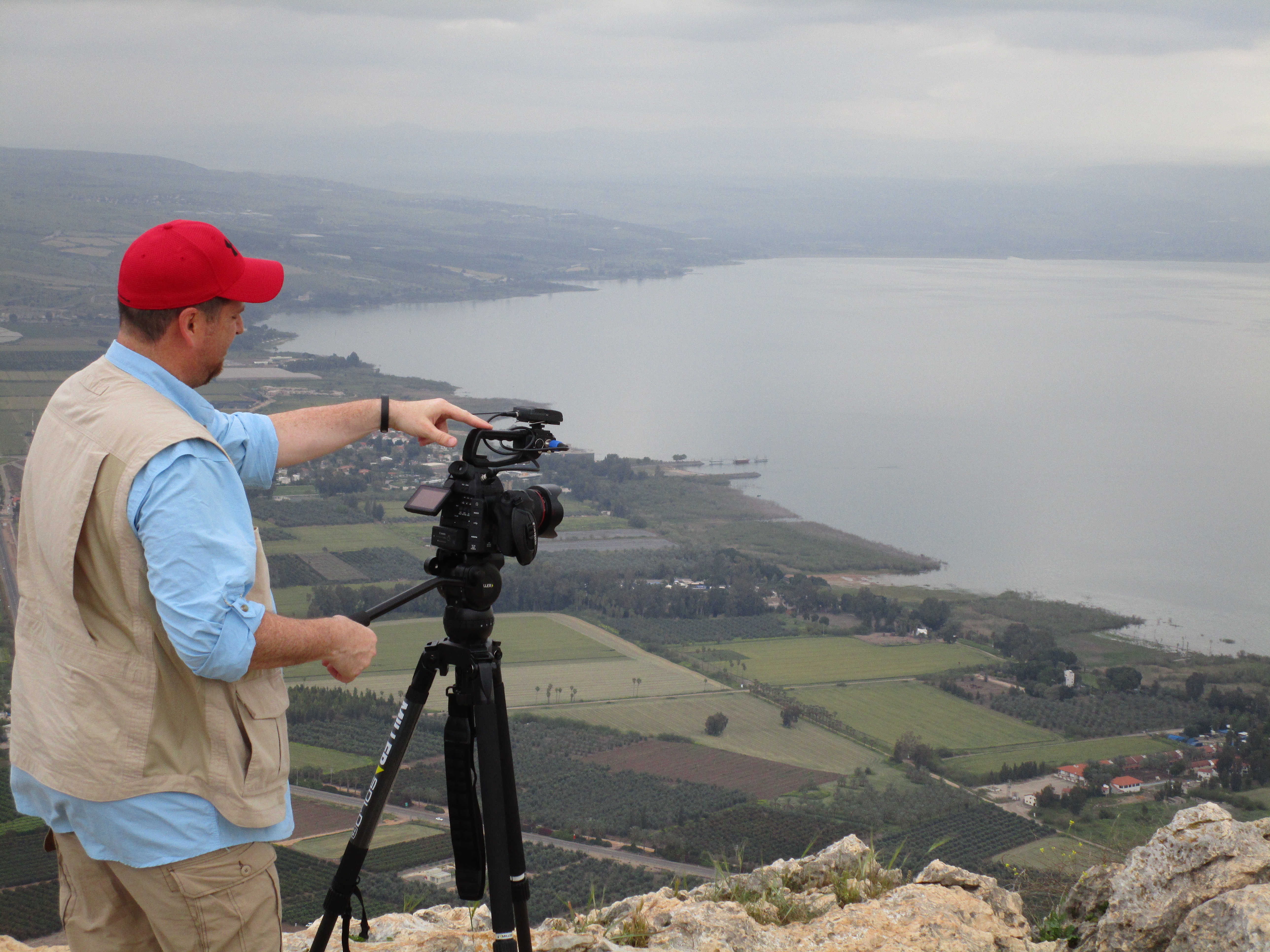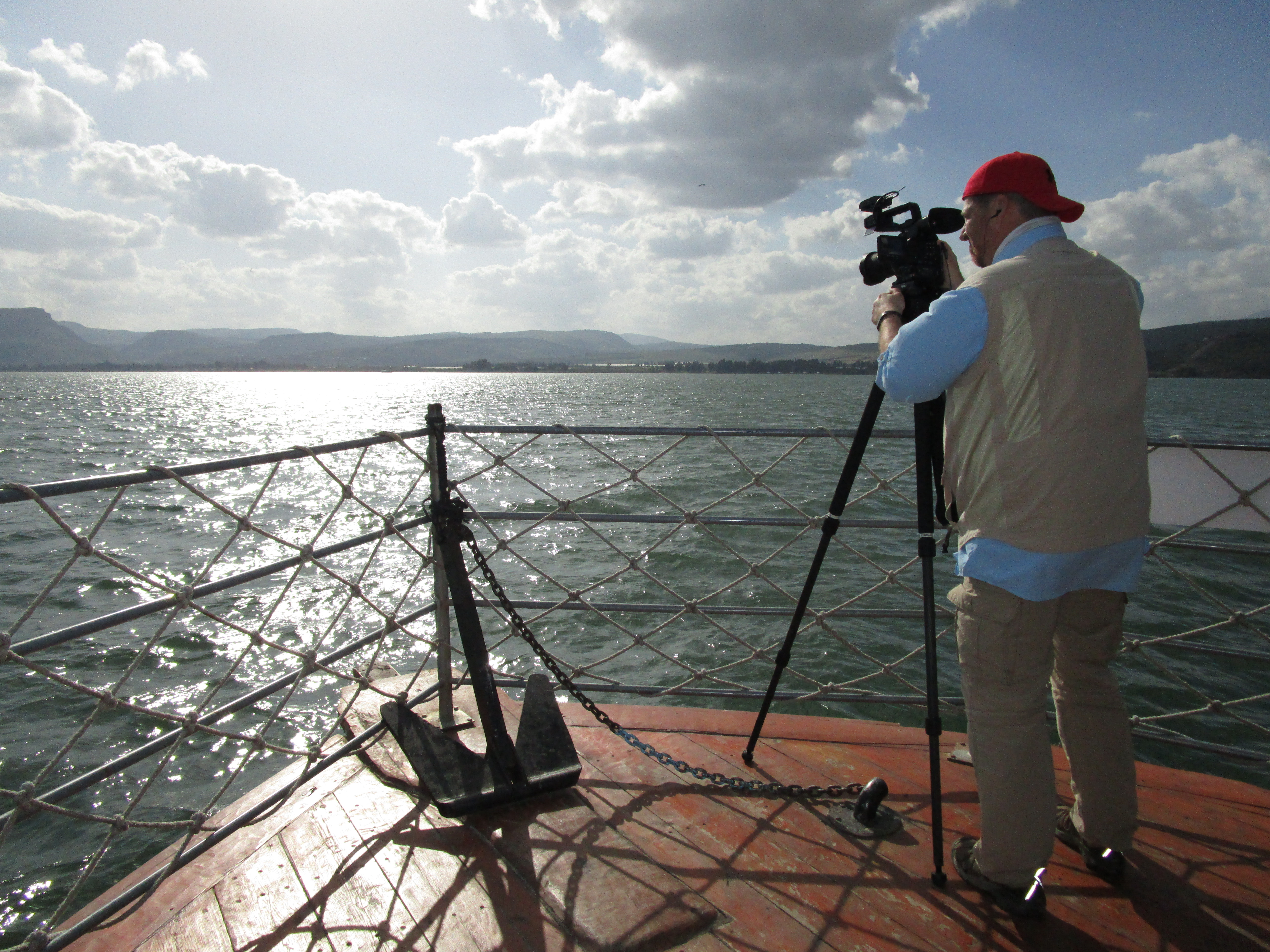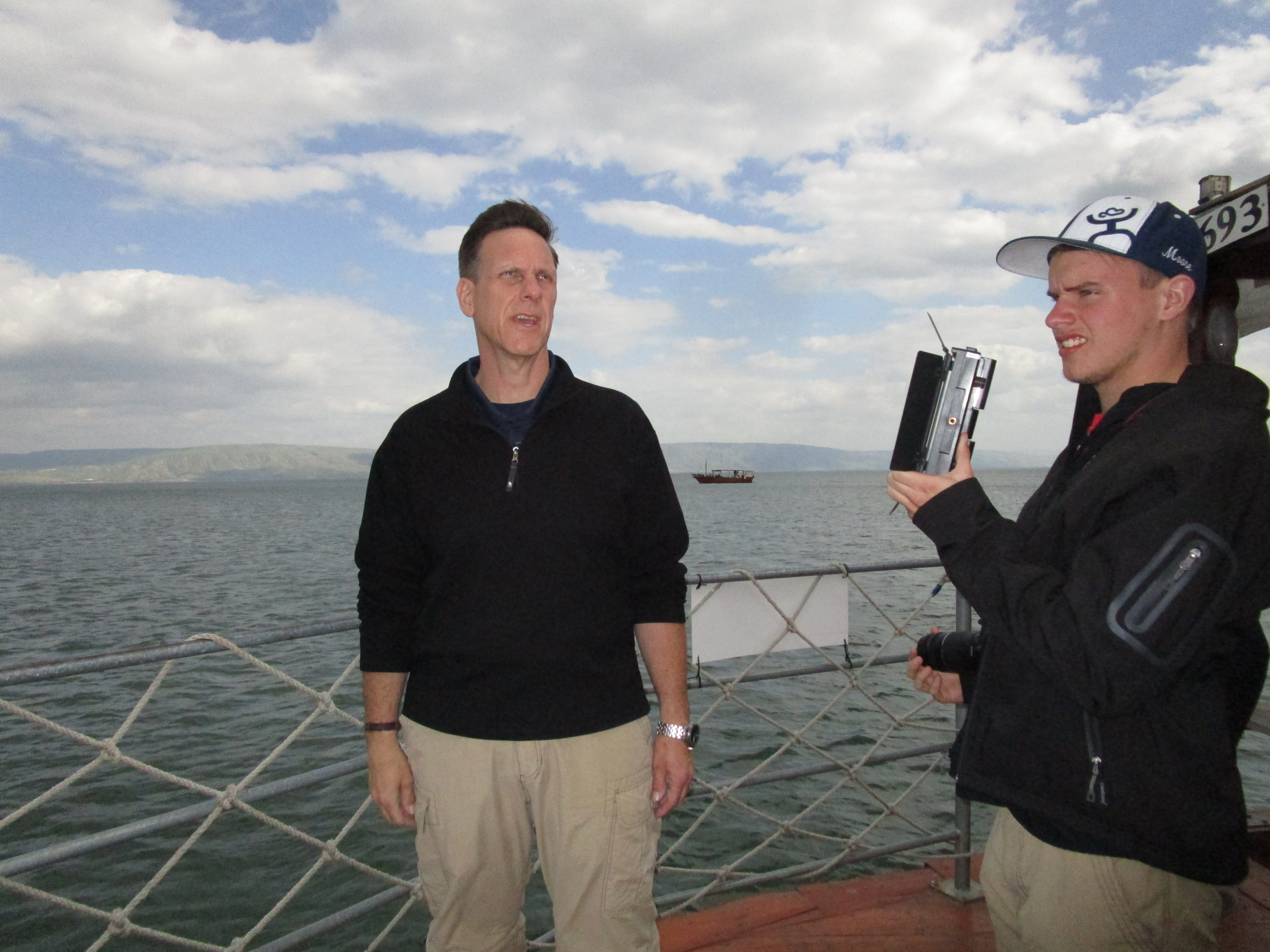 Rick had some A-roll he wanted filmed, but he wanted the Sea of Galilee to be in the background, so we hiked down an embankment (and probably trespassed) into a field with mown hay. Rick had his lines down and we were on our way again!