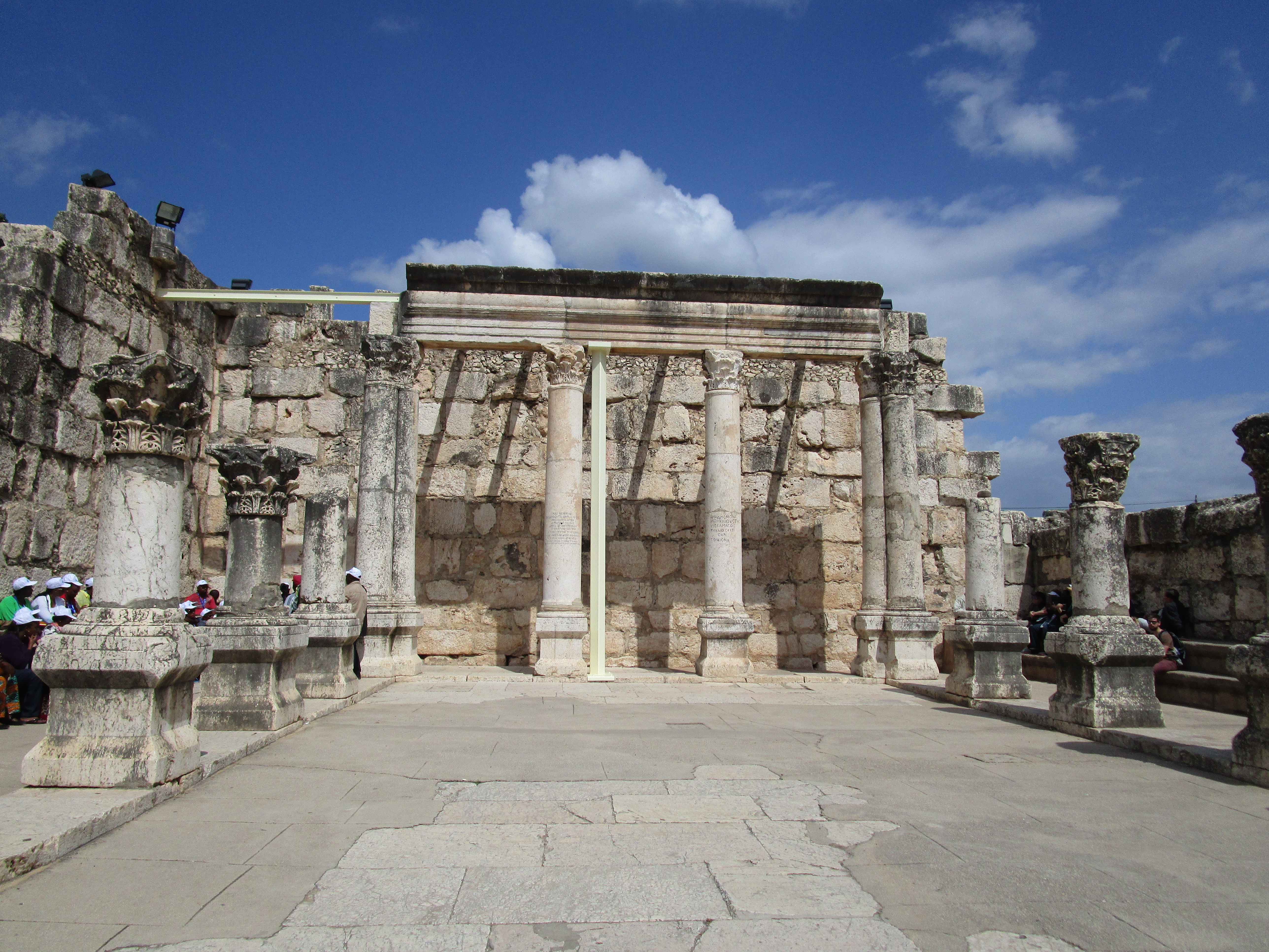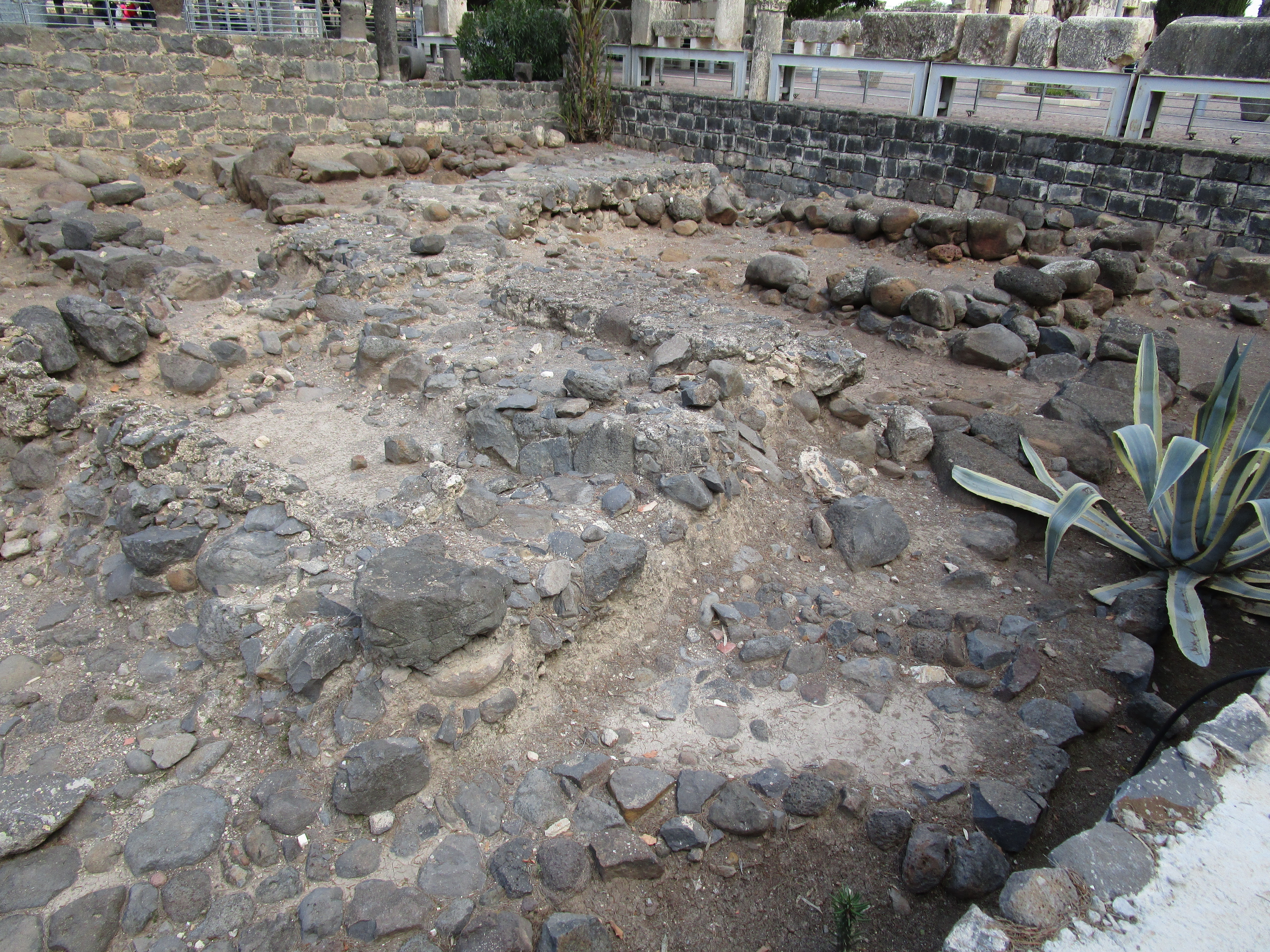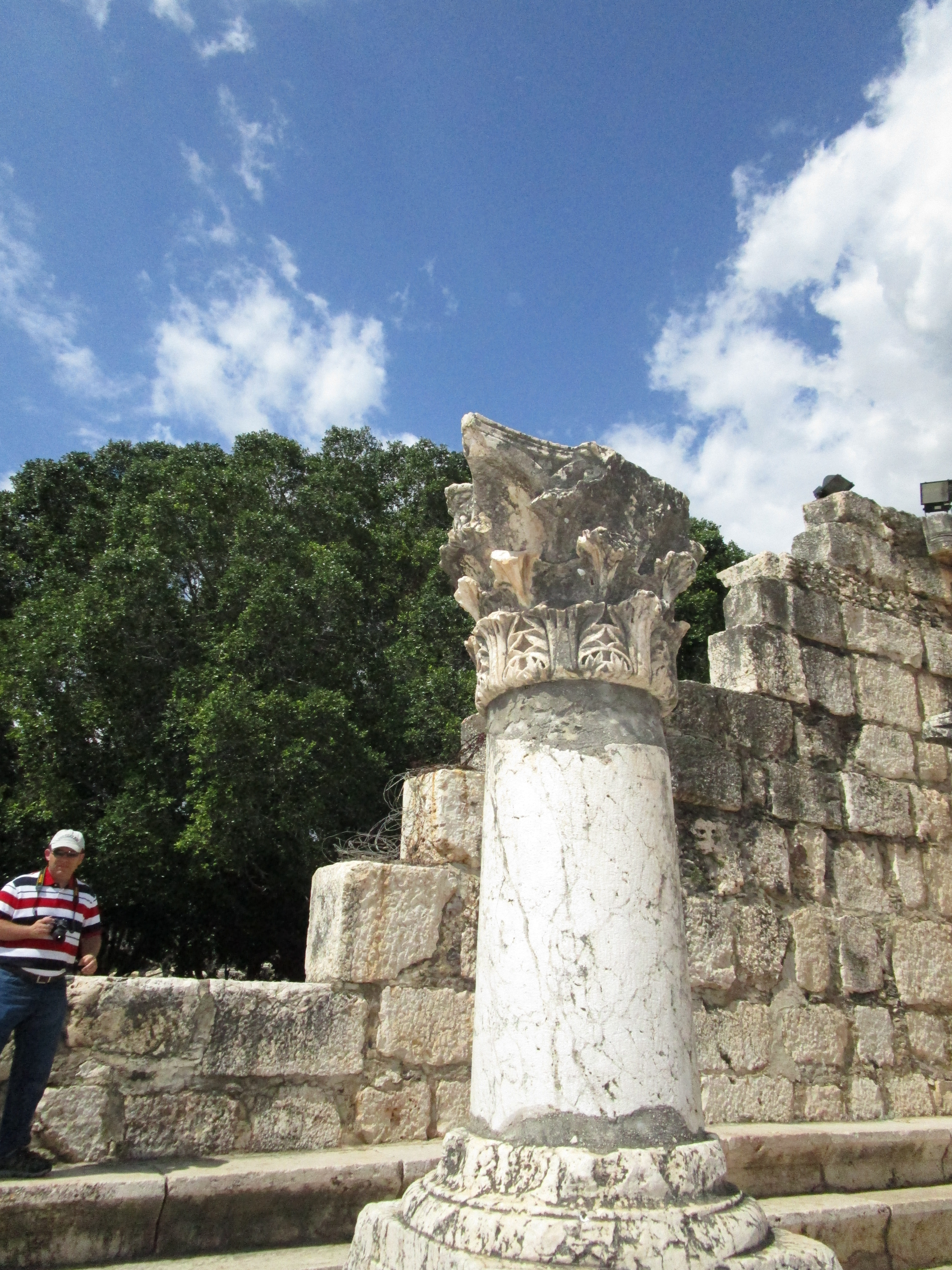 It is located on the shoreline of the north end of the Sea of Galilee. Standing inside the city, the sun shone on our faces, and I heard wind blowing through the trees and waves lapping on the shore. I could smell that peculiarly pleasant fishy scent that is so prevalent in seaside towns. It was windy and cool, but Tsvi told us in the summertime that it is so hot that it is impossible to remain outside for long.