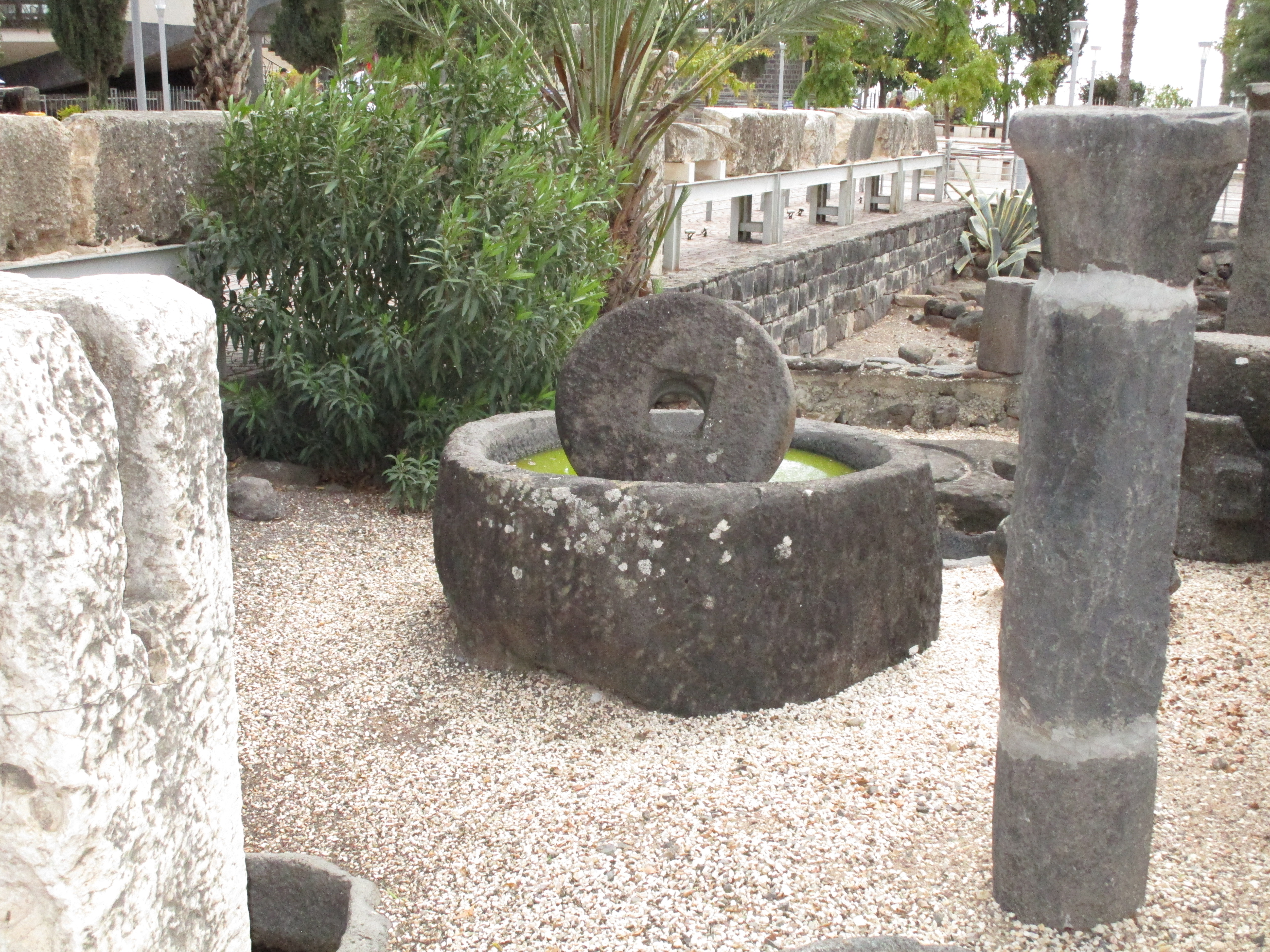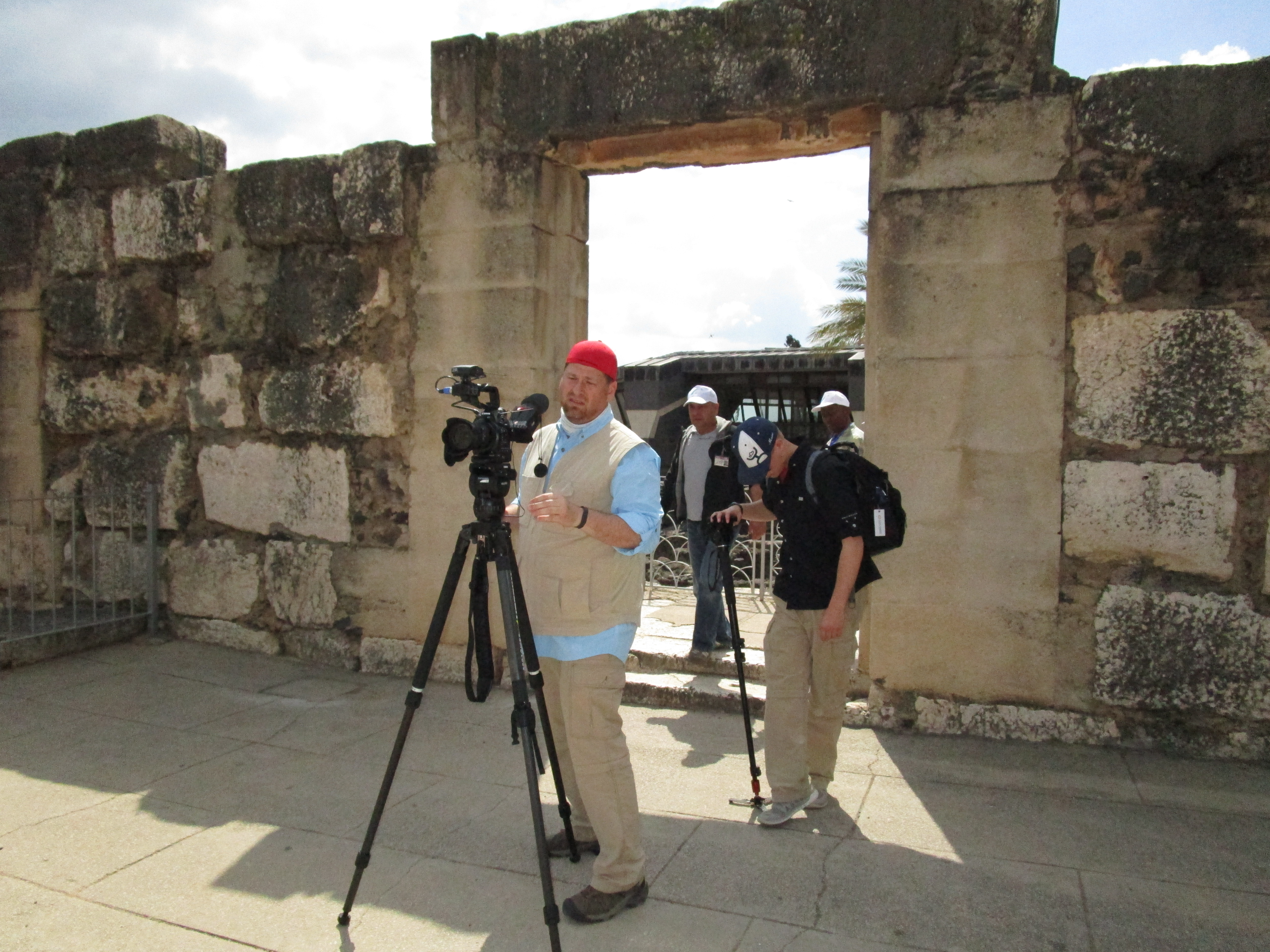 A fourth century synagogue is located here, and John began filming a lesson about Jesus’ ministry in Galilee. Archaeologists have excavated many millstones here, and while in Capernaum, Jesus taught about the importance of humility. “Whosoever receives one such child in my name receives me, but whoever causes one of these little ones who believe in me to sin, it would be better for him to have a great millstone fastened around his neck and to be drowned in the depth of the sea,” (Matthew 18:5). It was such a visual lesson to be just a hundred yards from the shore of the Sea of Galilee, and imagining Jesus gesturing to one of the millstones that lay nearby, and then to the Sea to illustrate the fate of one who caused a child to sin.