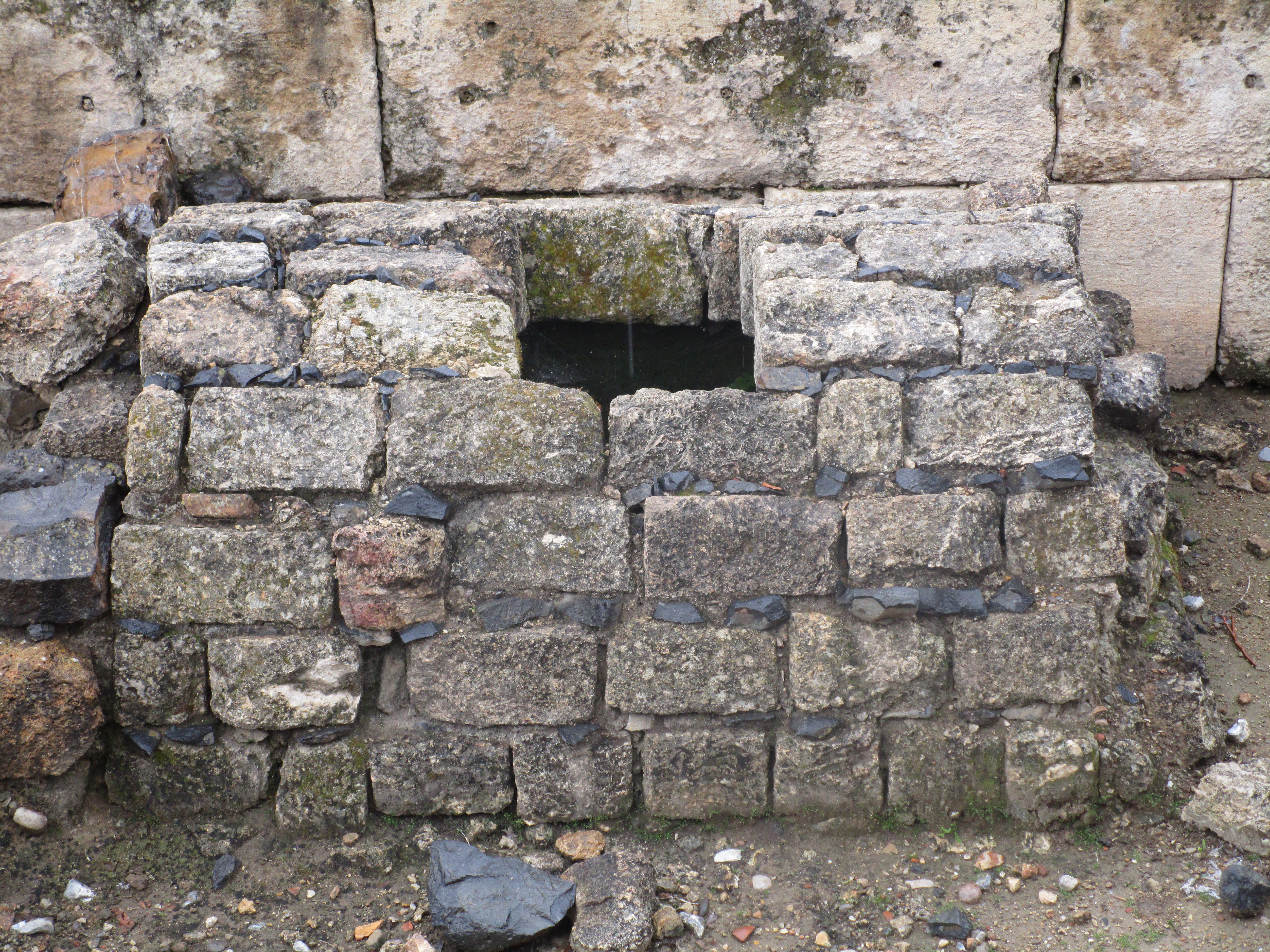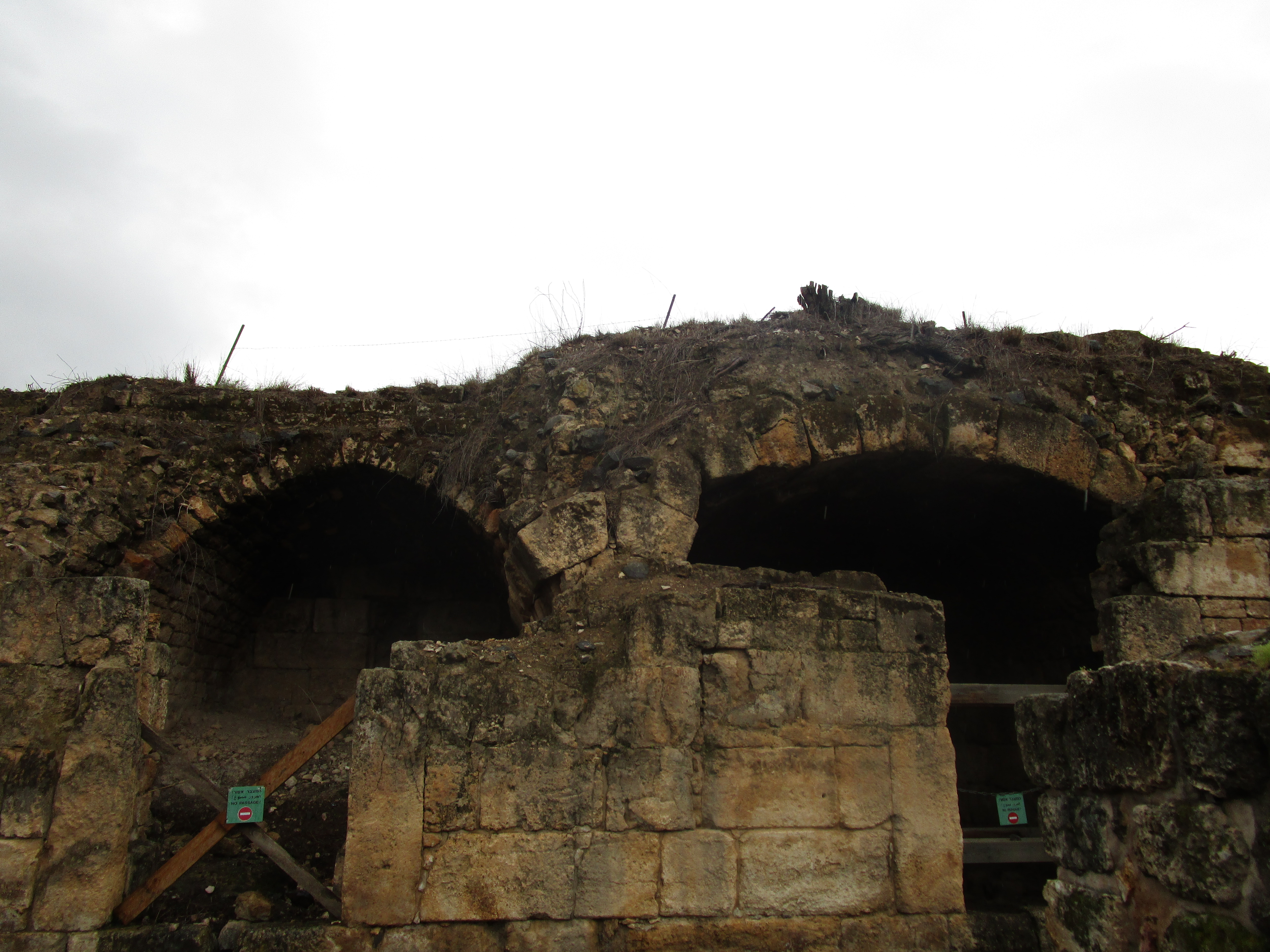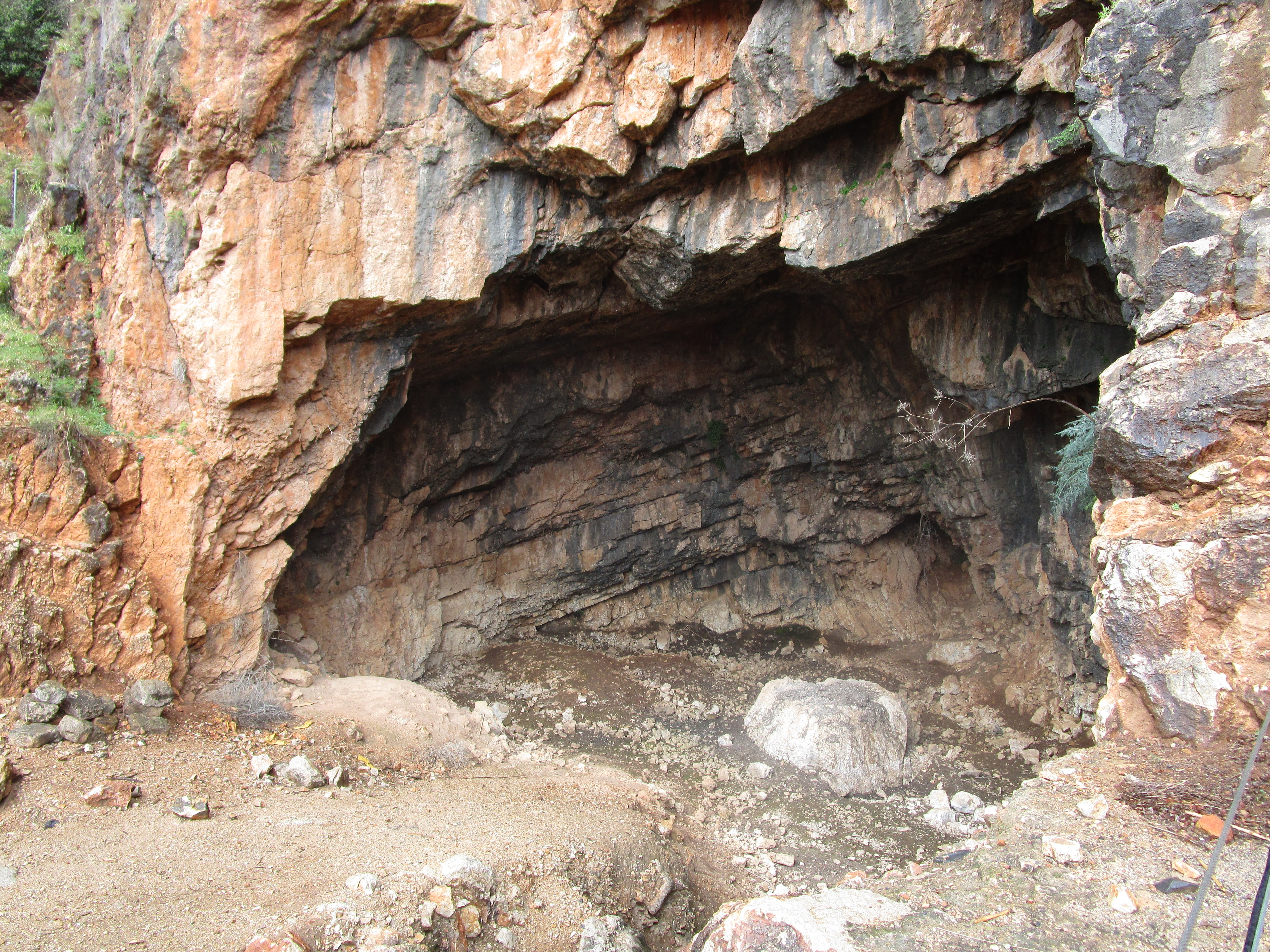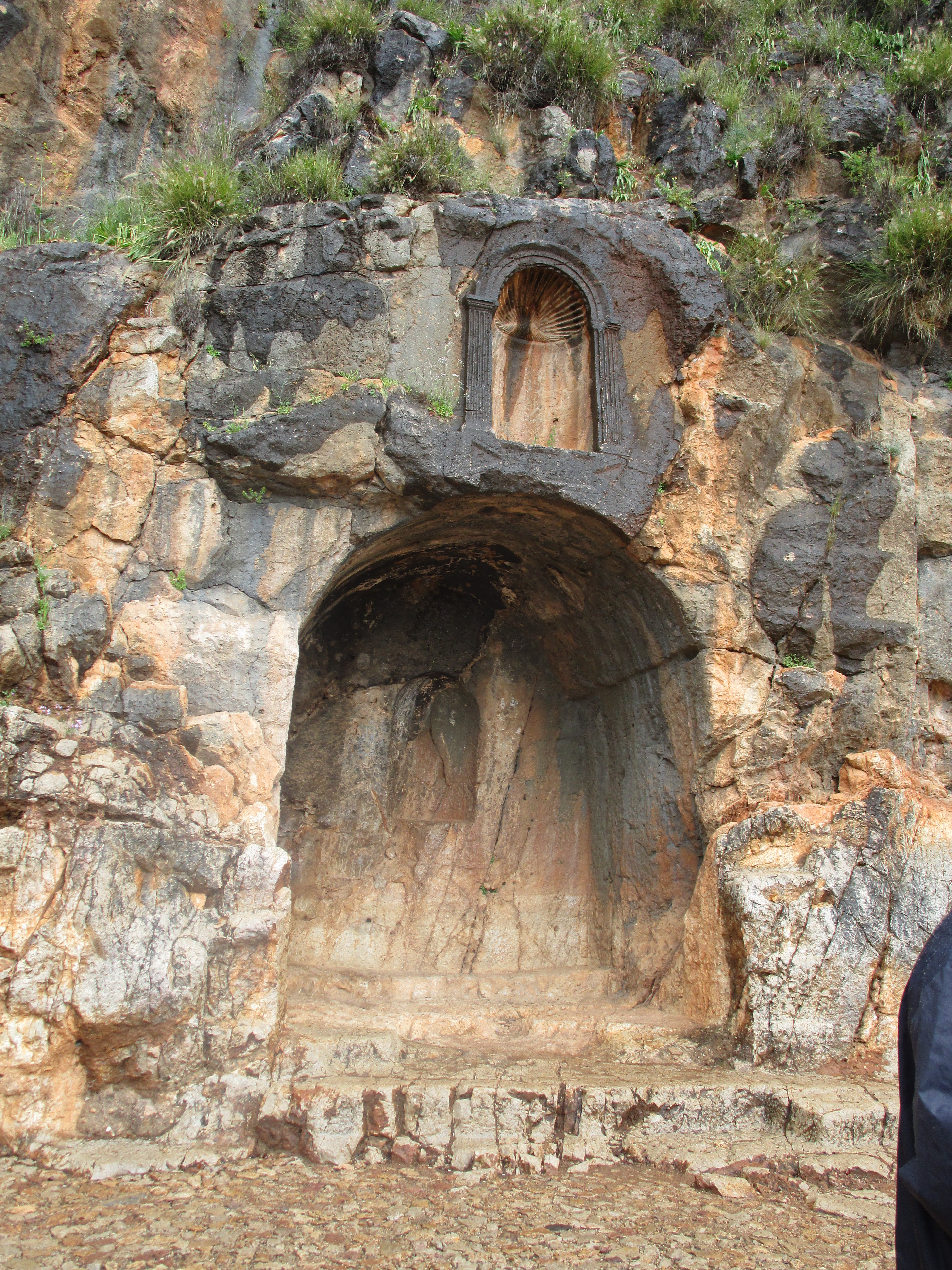 Today was a cold, and rainy day, and in some ways it was dreary as well. Dreary because of the evidence of idolatry we saw in three different places: Bethsaida, Caesarea Philippi, and Dan. Of the three, I unexpectedly found Caesarea Philippi the most disturbing. You have probably seen pictures of the grotto / cave from which a spring emerges and feeds the Jordan River. As we walked toward it, water from the spring rushed past us over a series of what appeared to be man-made dams. We climbed up several sets of wooden stairs and bridges over the water, and at the top, found the cave. It is an imposing sight: its dark orange and black and grey sharp-edged rocks protruding from the face of the mountain gives it the appearance of a gaping mouth. Some have said that this cave was known then as the “gates of Hades” (and that Jesus was referencing it in the Matthew 16 passage) because it was believed that Baal would enter and leave from places like this. Looking to the right of the cave, there are niches carved into the face of the mountain that were used to place idols and altars to worship the Greek gods Pan, Zeus, Asclepius, Athena and others. Further to the right were rectangular niches carved into rock on the ground where the bones of ritually sacrificed goats were buried.