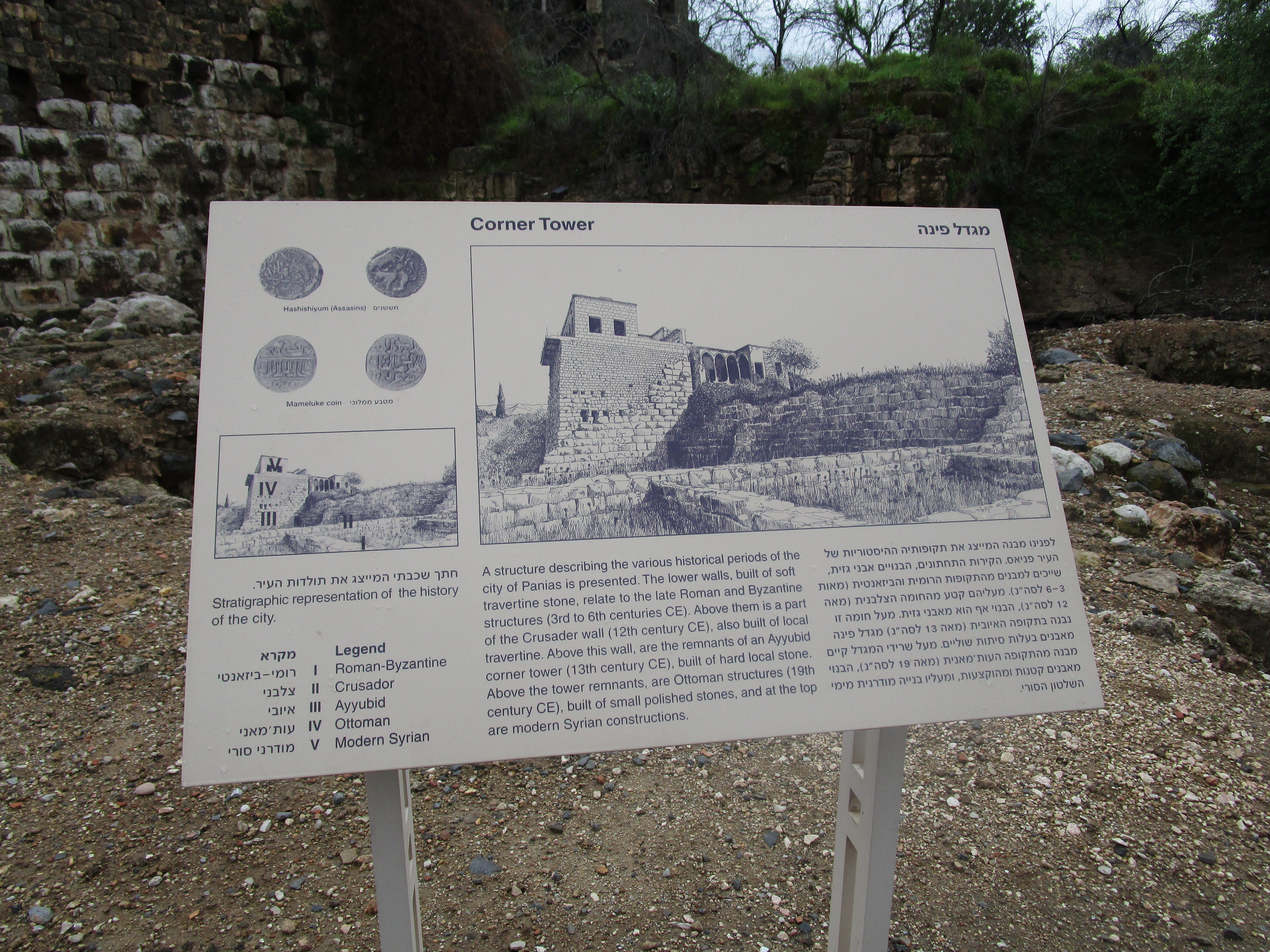 We moved on from Bethsaida to Caesarea Philippi in the Golan Heights region of Israel. It was not a short drive from the Sea of Galilee, between 45 minutes to an hour, and I wondered how long it took for Jesus and His apostles to travel on foot! Tsvi told us that we were quite close to Lebanon – we could see the Israel / Lebanon border (high on Mt. Hermon) from the highway. Aside from the pagan aspect of Caesarea Philippi, the ruins there were fascinating, and evidently recently discovered (John didn’t remember seeing this much from his visit 17 years ago.) In the palace ruins, we saw what appeared to be stables, a synagogue, and a bath house with a heating system. The stone walls were cut with precision. Tsvi showed us some Roman columns that, after they had been torn down, had been turned sideways and used as wall support, or a sort of filler. He said “today, we call it recycling!” The entrance of the synagogue had a very low doorway. Of course I am “vertically challenged” so I only had to bend my head a bit to enter, but anyone taller than me would have had to bend at the waist to enter the synagogue, thus taking on a “humble” pose. It made me think of Indiana Jones and the Last Crusade – “only the penitent man will pass!”