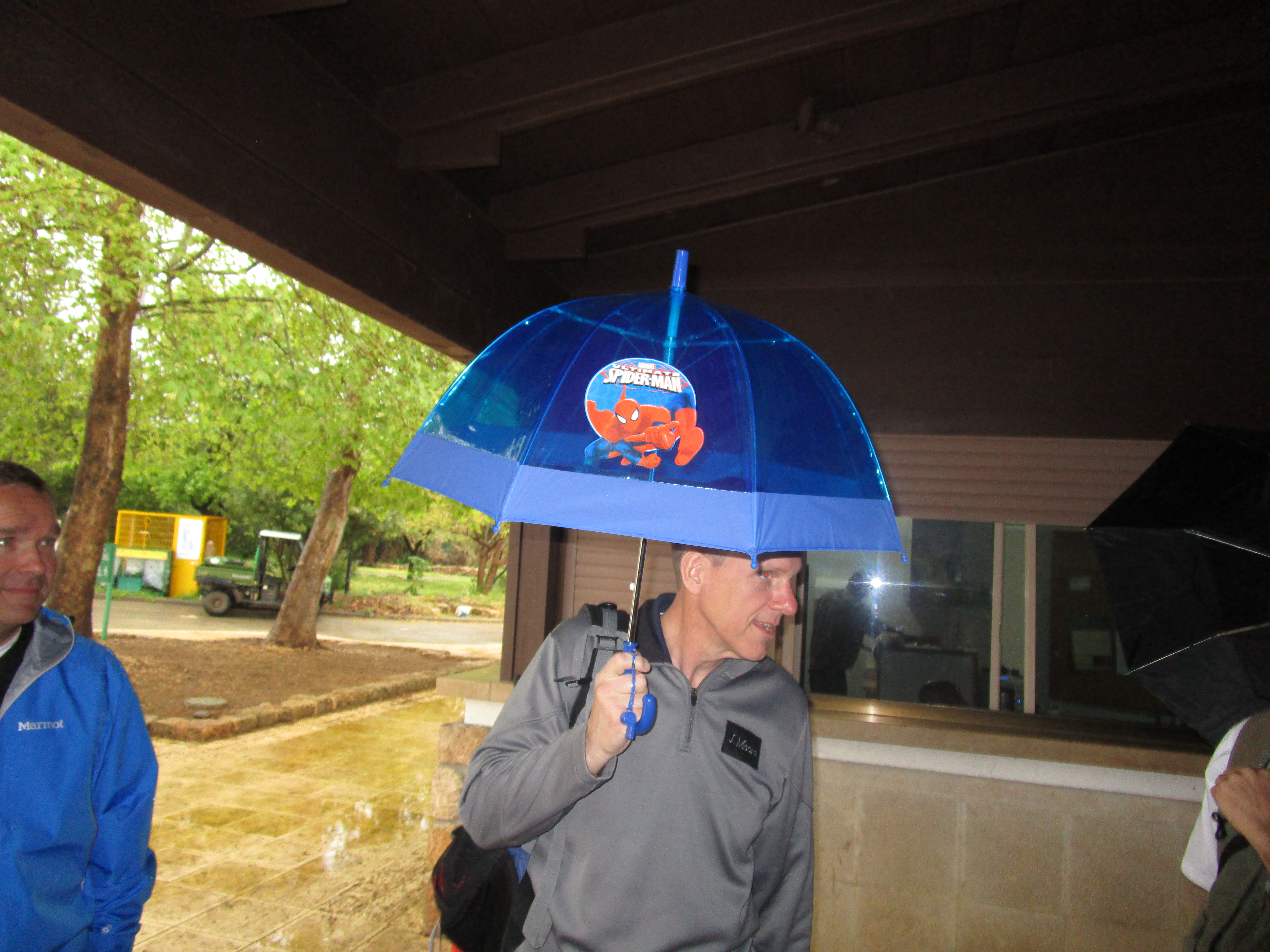 Never too old (or too wet) for a SpiderMan umbrella!