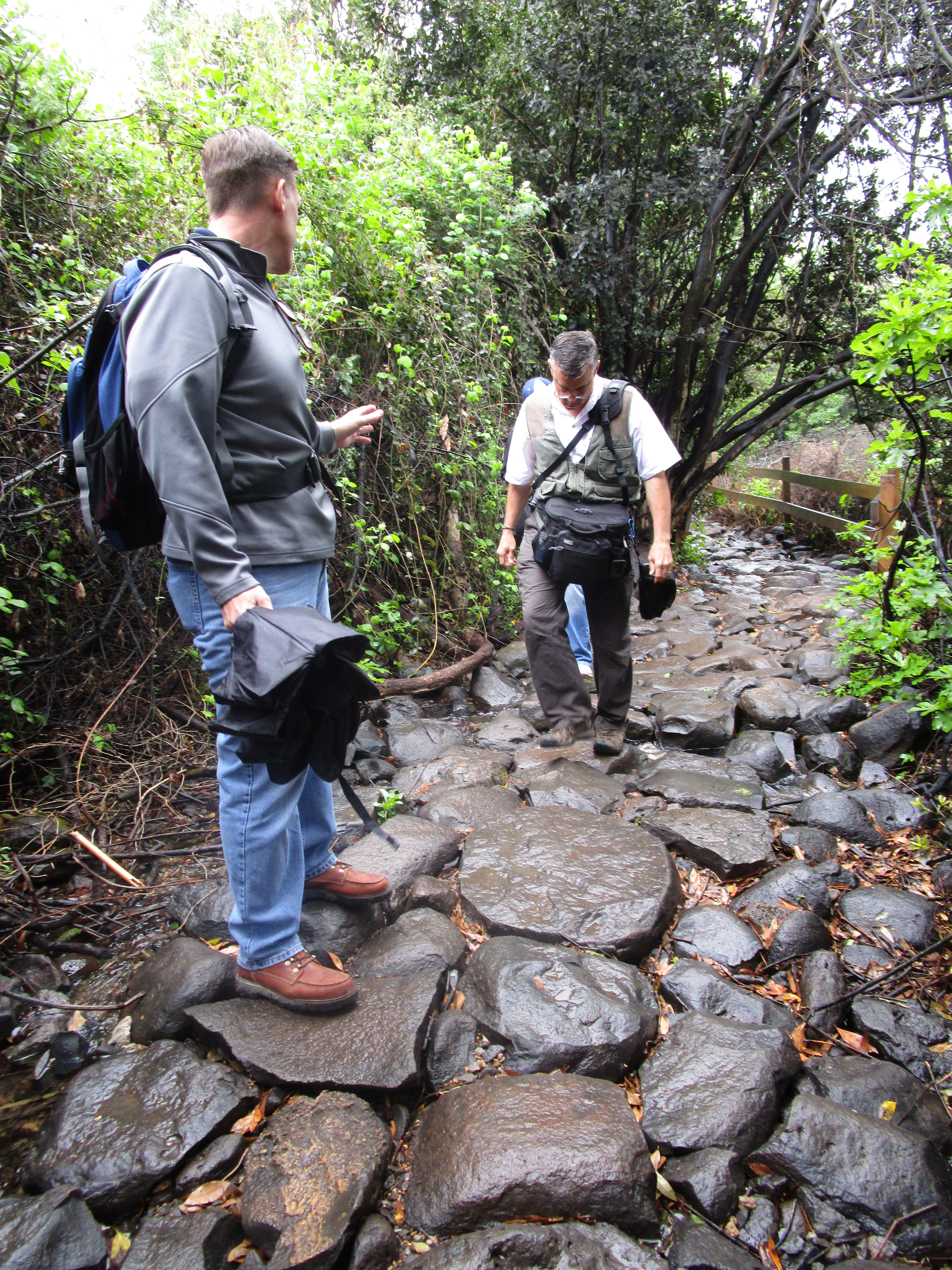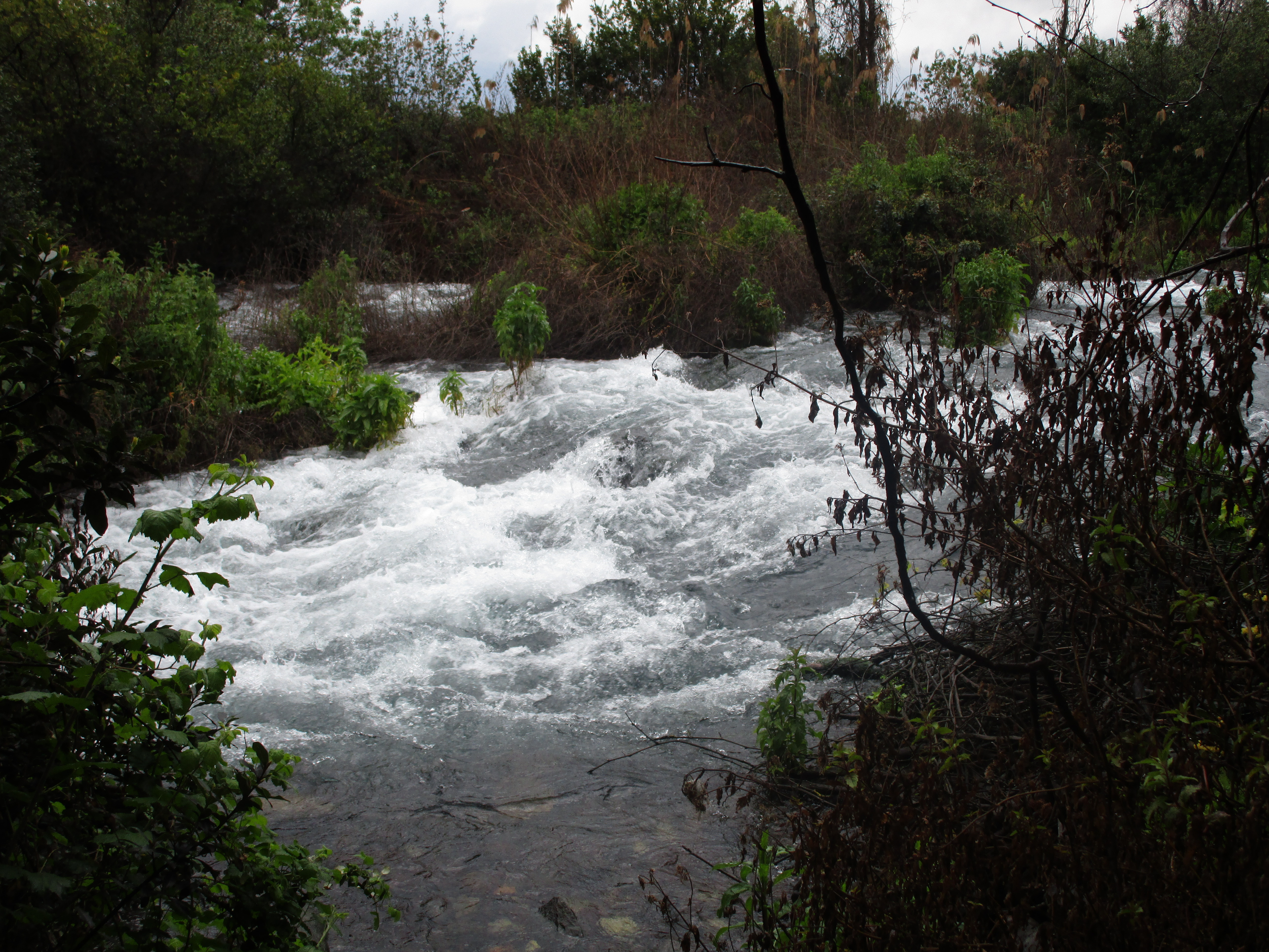 We stopped briefly today at En Dan – En or Ein meaning “spring”. We learned that these waters quickly reach the Jordan. If you dropped something into the water here (and at this spot, the water wasn’t rushing, although further down it was like whitewater rapids) it would end up in the Sea of Galilee within ten or eleven hours. That makes it a target for environmental terrorism – so they check the Sea every 12 or so hours for poison or biochemicals.