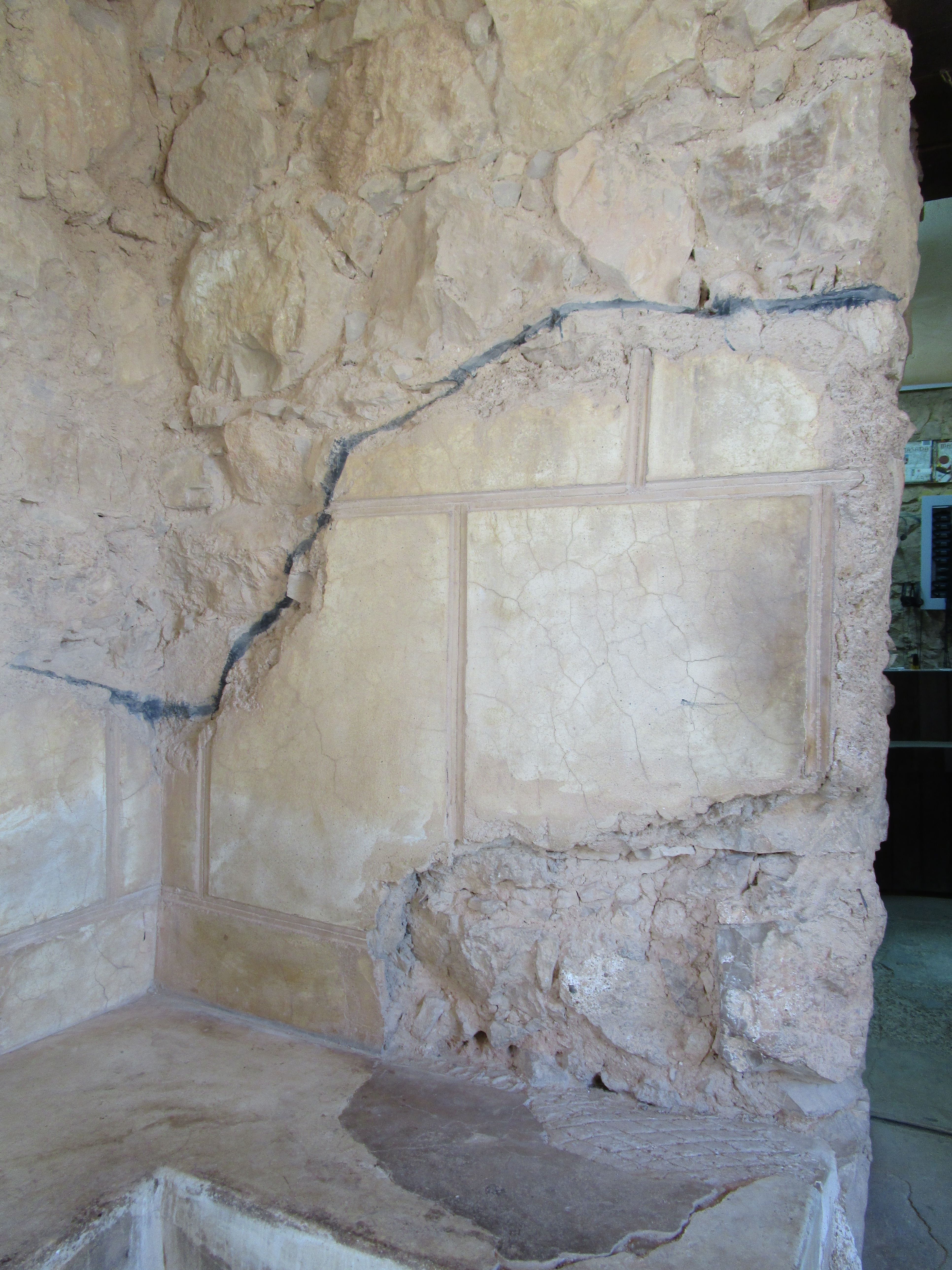 This area of Israel rarely sees rain; in fact, they usually have less than three inches per year. But the acqueduct system is fascinating. Huge cisterns were dug out of stone and a gorge was dammed up to catch floodwater when it came. The water would then be channeled into these huge cisterns. You can read in more detail here. A little model near the cisterns allows you to fill a cup with water and pour the water over the model, which shows how the water flowed downhill into the cisterns. And when you consider the amount of water required to fill the bathhouses, swimming pools, provide baths and drinking water – it’s staggering.