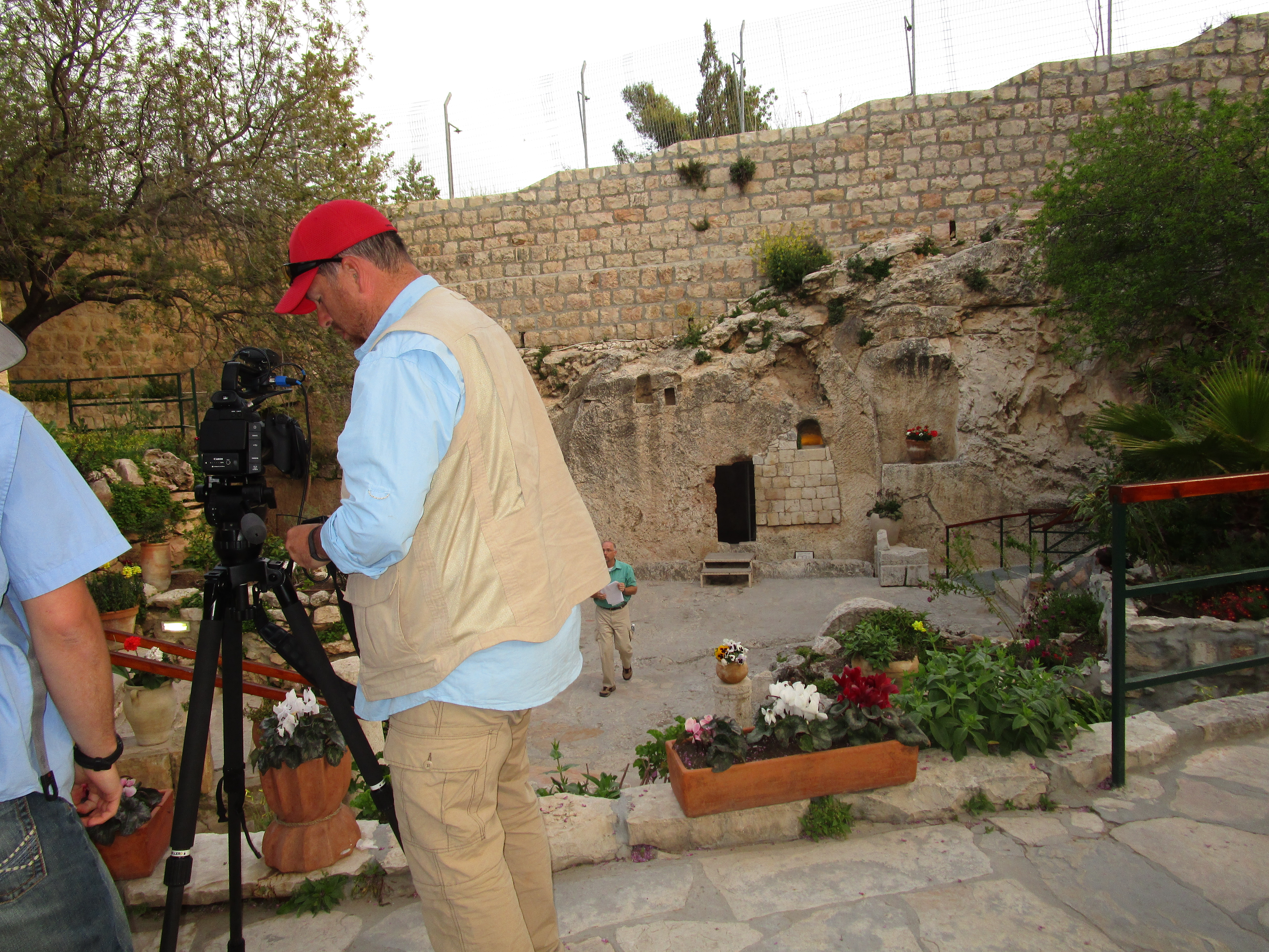 This morning we had a very early private appointment to see and film in the “Garden Tomb”, a possible location for Jesus’ burial and resurrection. There is some evidence that points toward this location: “Skull Hill” next to it that some consider Golgotha, the tomb is evidently a wealthy man’s family tomb (as Joseph of Arimethea may have owned,) and the rolling stone tomb is consistent with others found to be approximately 2000 years old. (You can look here for more detailed information.)