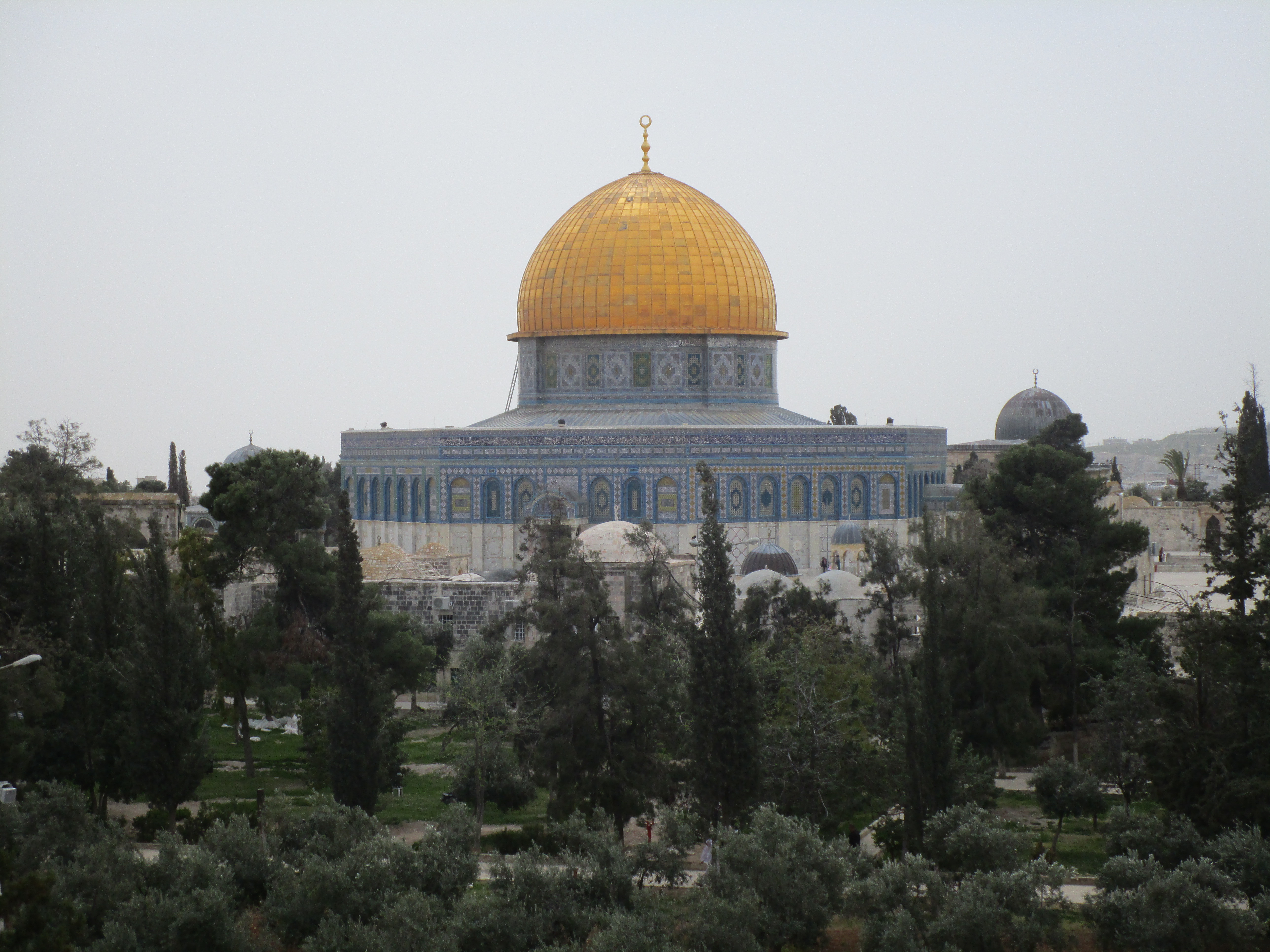 We split up for lunch, some of us going to have Tsvi’s favorite hummus, and others to a pizza stand in the Muslim quarter of the old city. Immediately after lunch, we headed down the Via Dolorosa, the way of grief. Around one corner, Tsvi found someone he knew, and then led us up a set of stairs and , five at a time (rather covertly, I thought) into the Islamic boy’s school Ormariyah, with windows overlooking the Temple Mount from what used to be the Antonia Fortress.