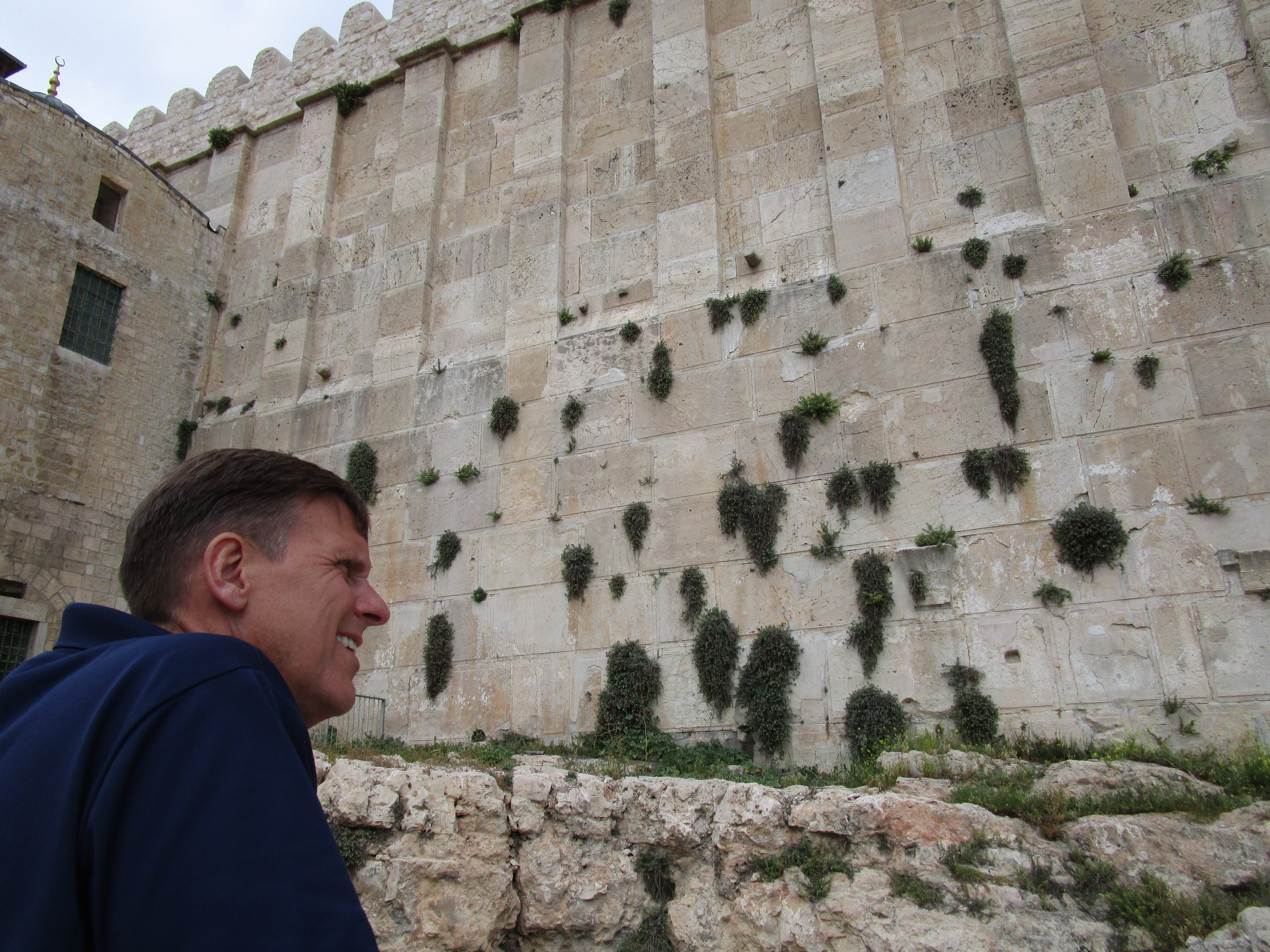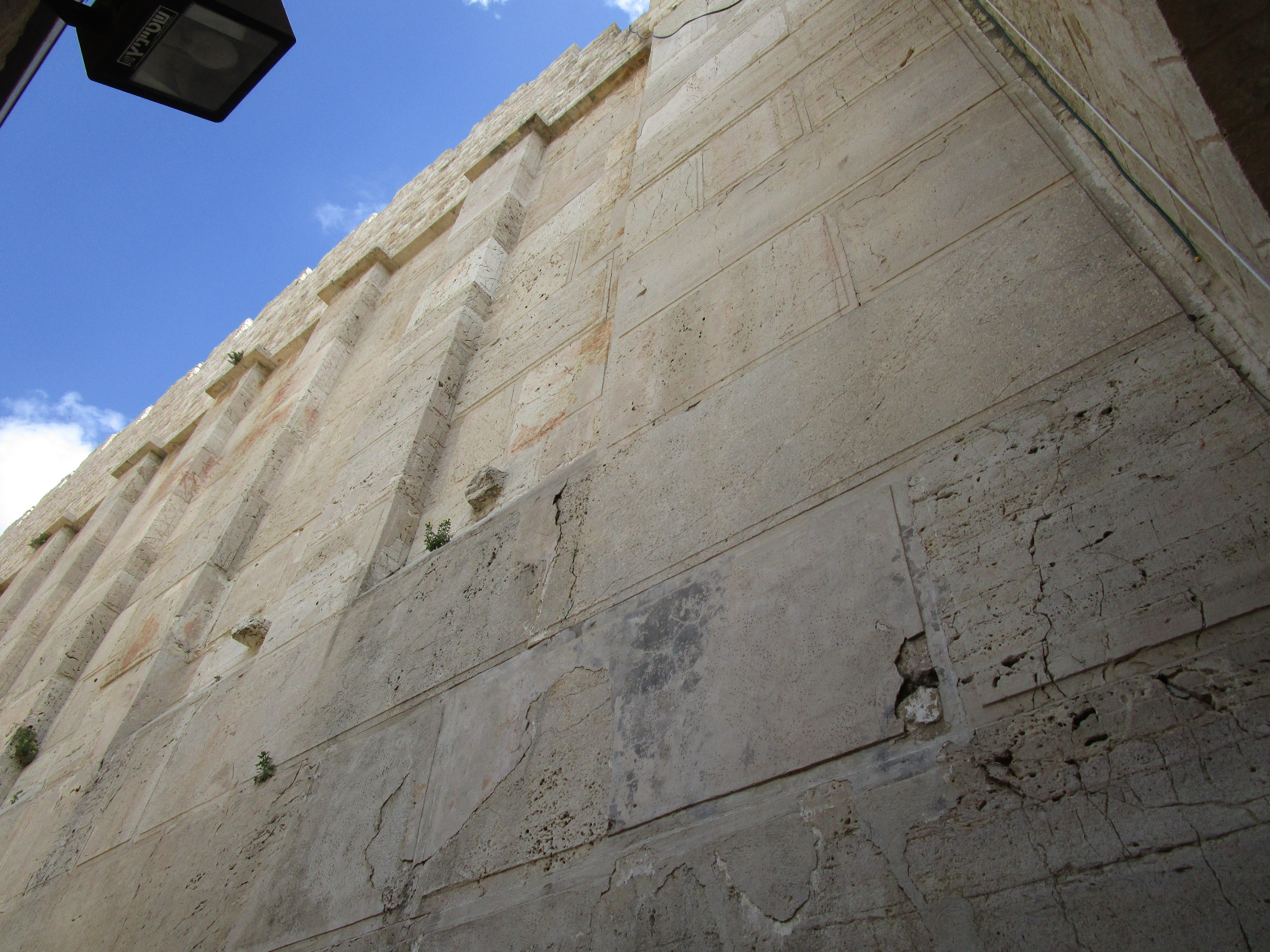 We left the restaurant and drove to the Cave of Machpelah (Genesis 23), where the Bible says Abraham, Sarah, Isaac, Rebekah, Jacob and Leah are buried somewhere. I was expecting a cave, but instead found a huge structure built over the cave centuries ago, with walls constructed by Herod the Great. Half of the structure is a Muslim mosque and the other half is Jewish synagogue. There are some Jews who live in the West Bank, but it isn’t the safest place for them – as someone said, “it’s like playing with ants.”