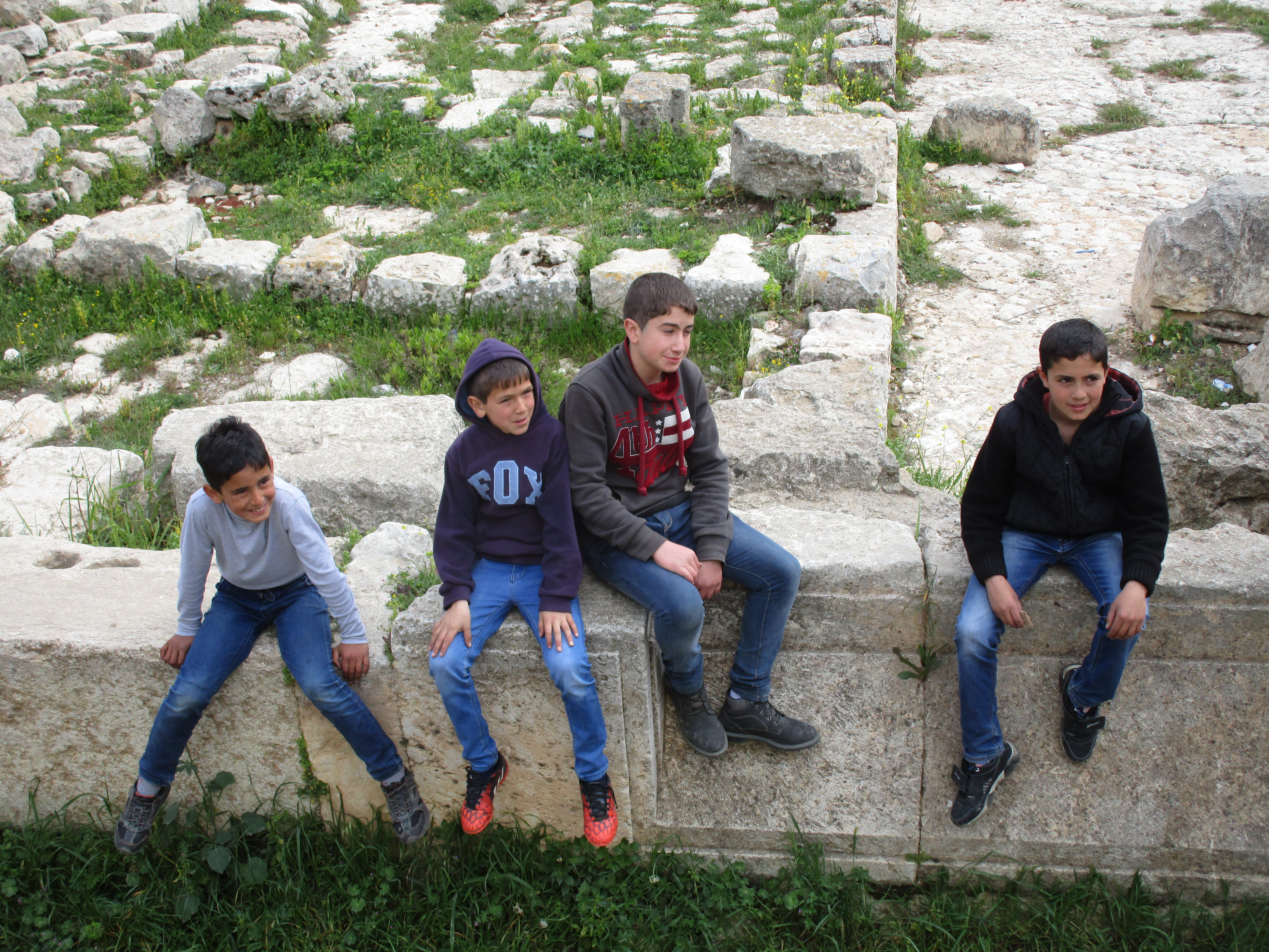 Hisham and the new driver (I never learned his name) took us to a restaurant called Abu Mazen. It was clean and smelled nice, but we were ushered past several groups of men into a back area. I don’t know if it was because they were full out front or if they put us there because of our nationality. I never felt scared or threatened as a woman, but I didn’t exactly feel welcomed, either. I asked John to go with me to the bathroom and stand outside, which he did, but as soon as I finished washing my hands, a man came in to the sink area where I was drying my hands. John was just outside, and called my name when he saw what had happened. I don’t know if the men’s room was occupied, or why he came in there, but it’s happened several times since we’ve been here.